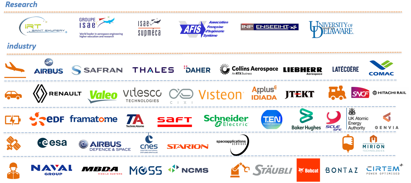 Vous pouvez consulter ci-dessous nos clients et partenaires principaux et vous faire une idée plus précise sur nos offres de service: Processus d’Ingénierie de Systèmes, Ingénierie Pilotée par les Modèles et Recherche Avancée.